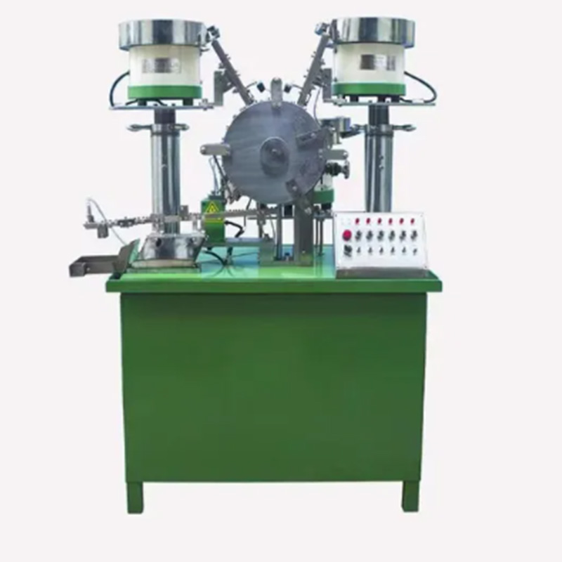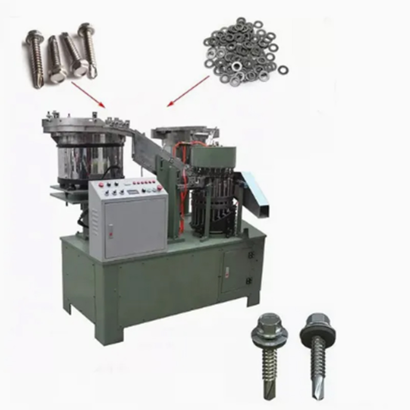 Машината за склопување за перење со завртки од јаглероден челик прима завртки и подлошки од посебни канти. Може автоматски да постигне прецизно усогласување помеѓу завртката и мијалникот и стабилно да го притисне мијалникот во одредената положба на завртката. Овој уред е специјално дизајниран да се справи со тврдоста на деловите од јаглероден челик и нема брзо да се истроши.